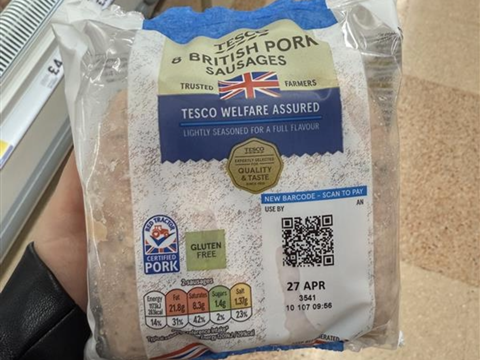 Tesco is replacing traditional barcodes with next-generation QR codes on its own-brand sausage packaging, intending to provide up-to-date information such as use-by dates and recyclability instructions.
